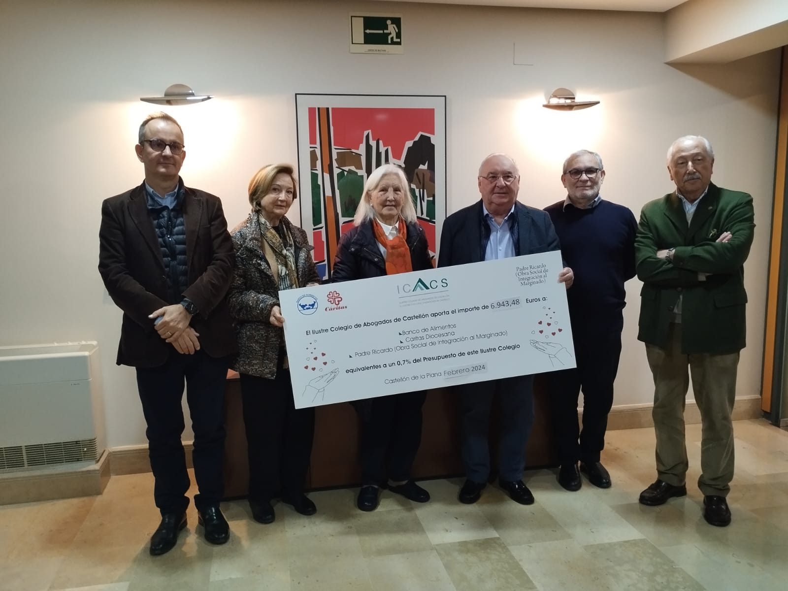 El Ilustre Colegio de Abogados de Castellón hace entrega del 0,7% destinado a fines sociales a Cáritas, OSIM y el Banco de alimentos.