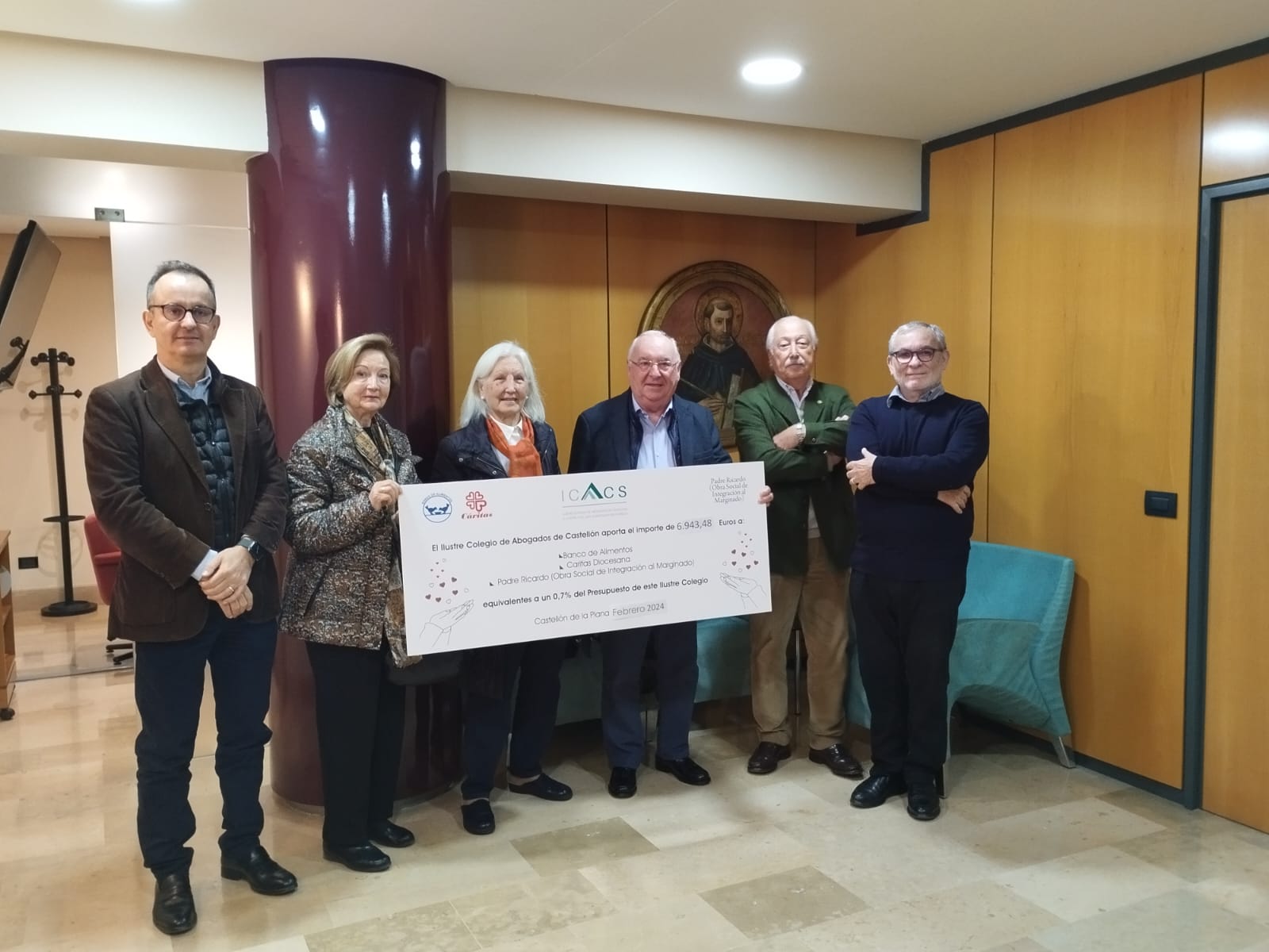 • El Ilustre Colegio de Abogados de Castellón hace entrega del 0,7% destinado a fines sociales a Cáritas, OSIM y el Banco de alimentos.